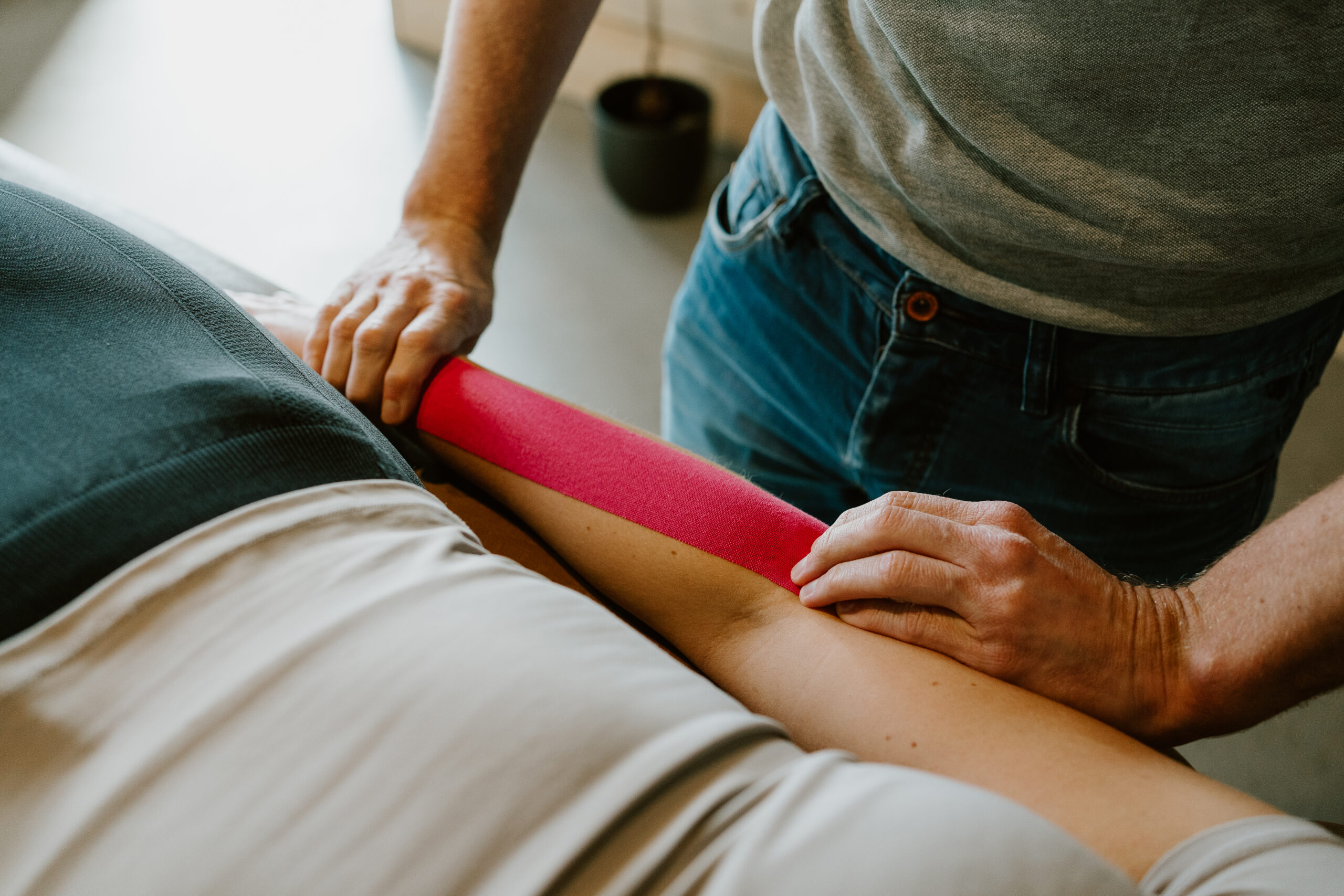Medical taping is een specifieke behandeltechniek die wordt gebruikt bij Fysiotherapie Marc Geers als onderdeel van een behandelplan om verschillende aandoeningen te behandelen en ondersteunen. Bij deze techniek wordt gebruik gemaakt van elastische tape die op de huid wordt aangebracht in specifieke patronen om de beweging te ondersteunen, pijn te verminderen, zwelling te verminderen en de spierfunctie te verbeteren.